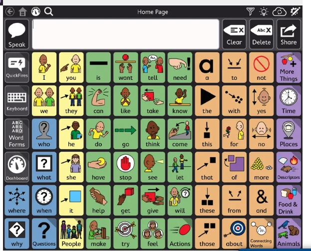 TD Snap Motor Plan: This is a new language set from TobiiDynavox. This language set supports a robust core vocabulary, development of word-by-word sentence construction, and motor planning. Words appear once within a motor plan, allowing the user to develop motor planning when accessing symbols and building sentences. There are 2 grid sizes: Motor Plan 30 & 66. The vocabulary of each grid size supports the development of early language and sentence development by advanced communicators. The language system continues to support Quick Fires, Keyboard, Word Forms, and access to the Dashboard, as well a multiple fringe vocabulary folders. A goal of this language set is to support word groupings and access to shorter navigational strategies.
